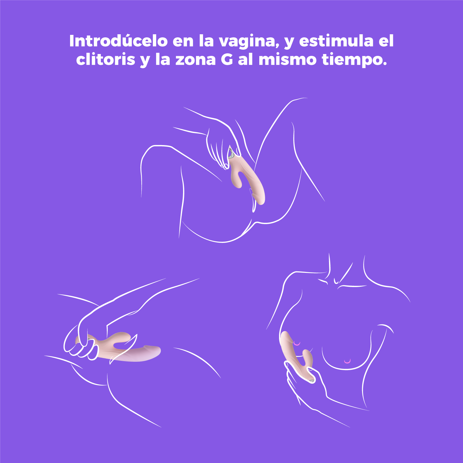 Su diseño combina una sección insertable enfocada en el punto G con un estimulador externo tipo “rabbit”, creando una sensación completa y equilibrada. Las vibraciones trabajan tanto en el interior como en el clítoris, ayudando a intensificar cada momento.