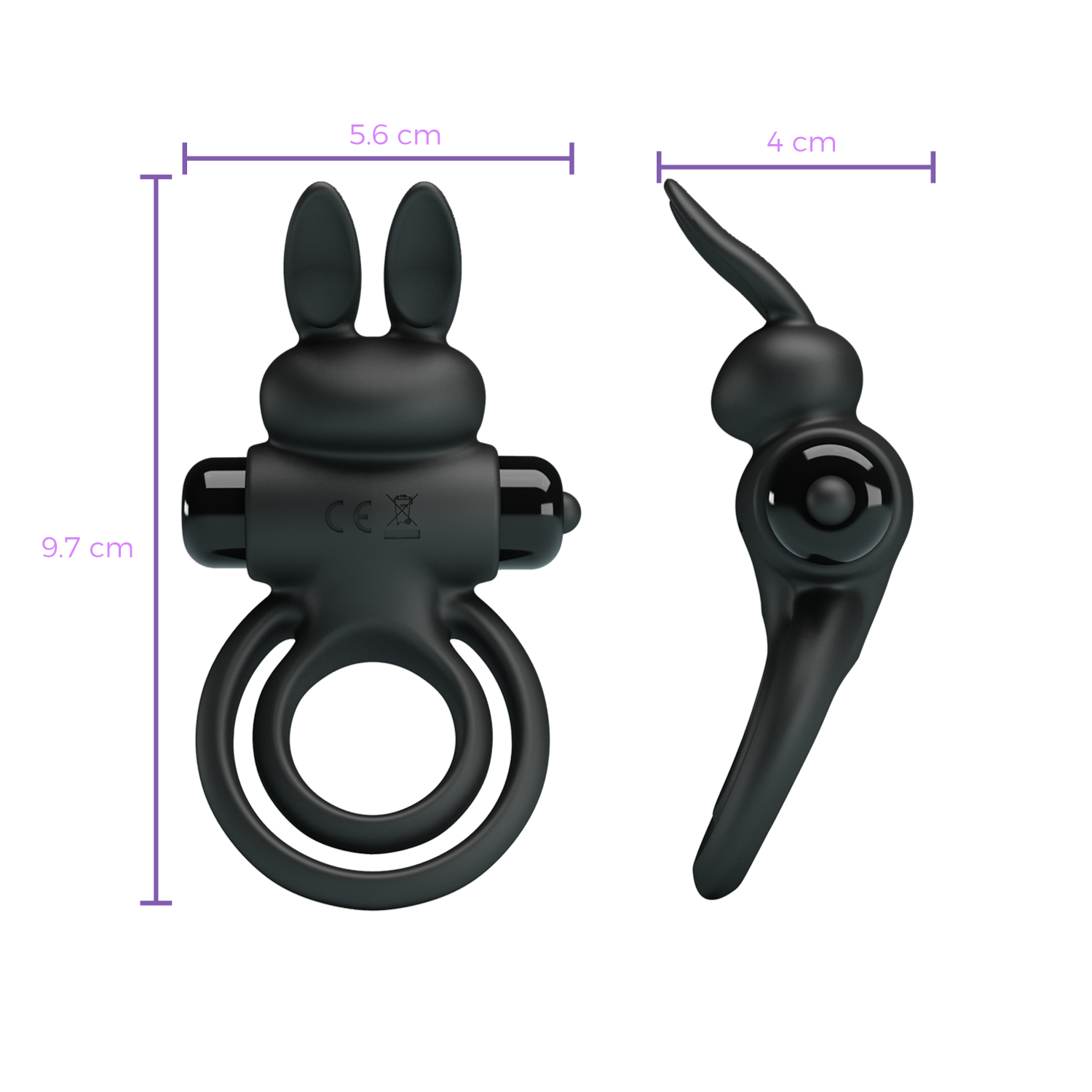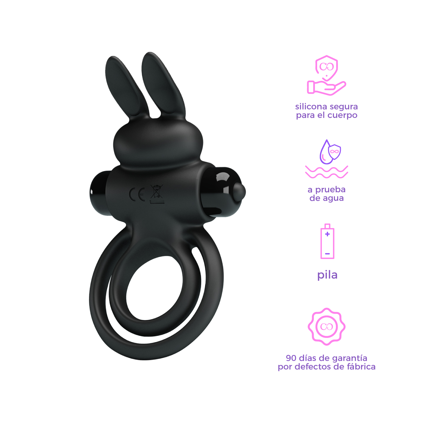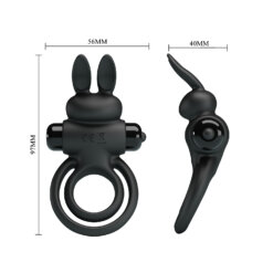 El anillo se ajusta a la base del pene, ayudando a mantener la erección por más tiempo y con mayor intensidad. Su diseño incorpora un estimulador tipo “rabbit” que entra en contacto con el clítoris, proporcionando vibraciones intensas que elevan la experiencia para ambos.