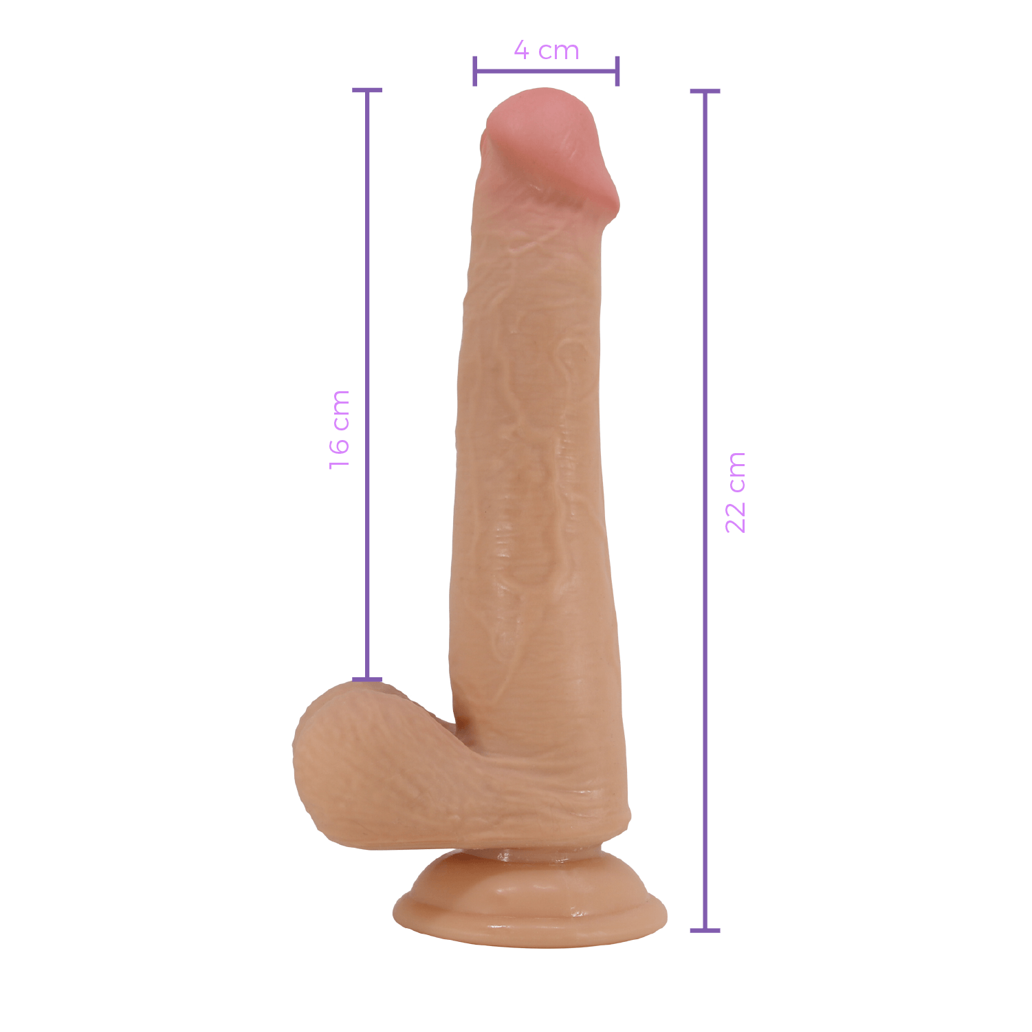 Cuenta con detalles realistas y un cabezal definido que aumentan la sensación durante el uso. Además, su base con ventosa permite fijarlo en superficies lisas, ideal para disfrutar de forma cómoda y manos libres.